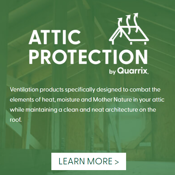 From Ventilation products specifically designed to combat the elements of heat, moisture and Mother Nature in your attic to Innovative, curb-appealing products engineered to maintain a dry roof deck and RainScreen products designed to keep walls dry, Quarrix provides a plethora of effective materials to ensure a safe and healthy home.